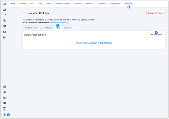 Select the Settings ⚙️ icon → Developer → Apps → Click New application