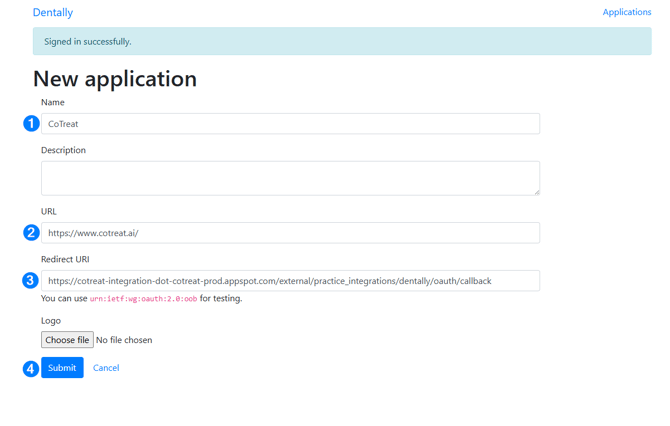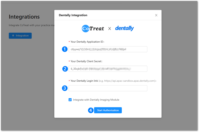 Part 2: Enter Dentally connection details in CoTreat