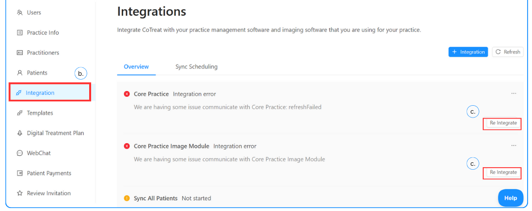 You can re-integrate Core Practice directly from within CoTreat.