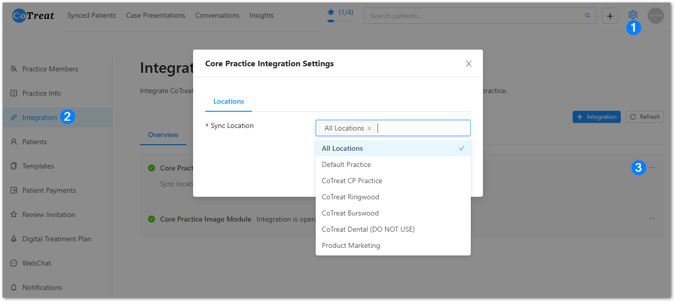 You can update which Core Practice locations sync with CoTreat at any time.