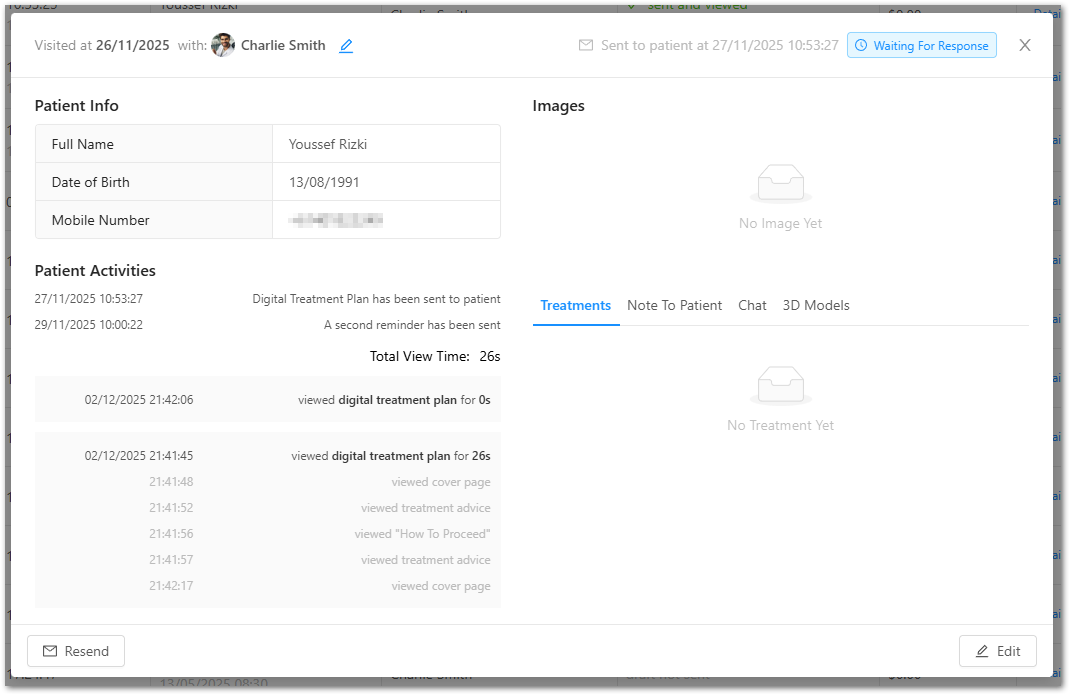 The Case Presentations area helps you see which patients have received, viewed, or responded to a Digital Treatment Plan, so you can focus your time where it matters most.