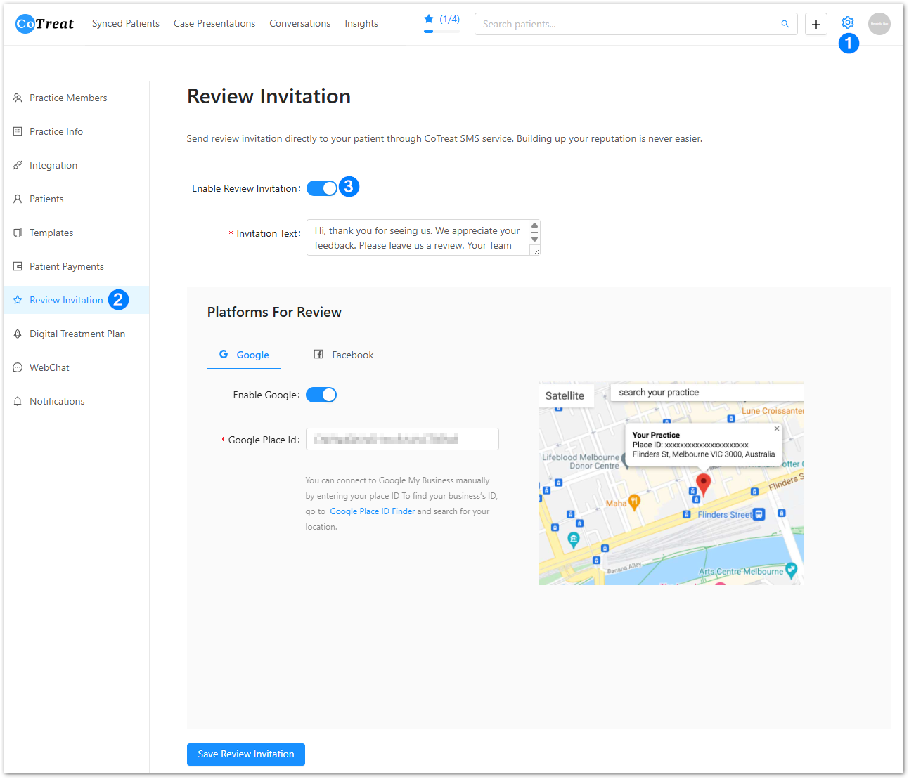 Set Up Patient Google/Facebook Review Invitations in CoTreat