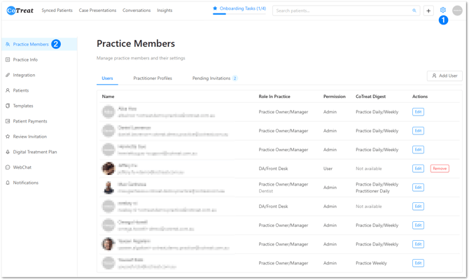 Go to Settings → Practice Members