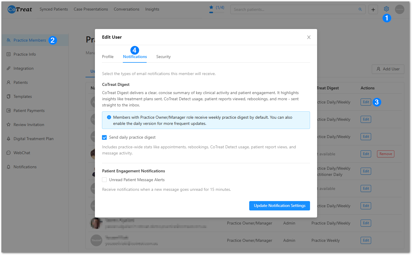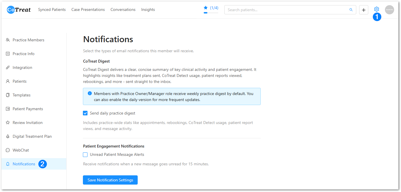 With Digests and Notifications enabled, CoTreat helps your practice: