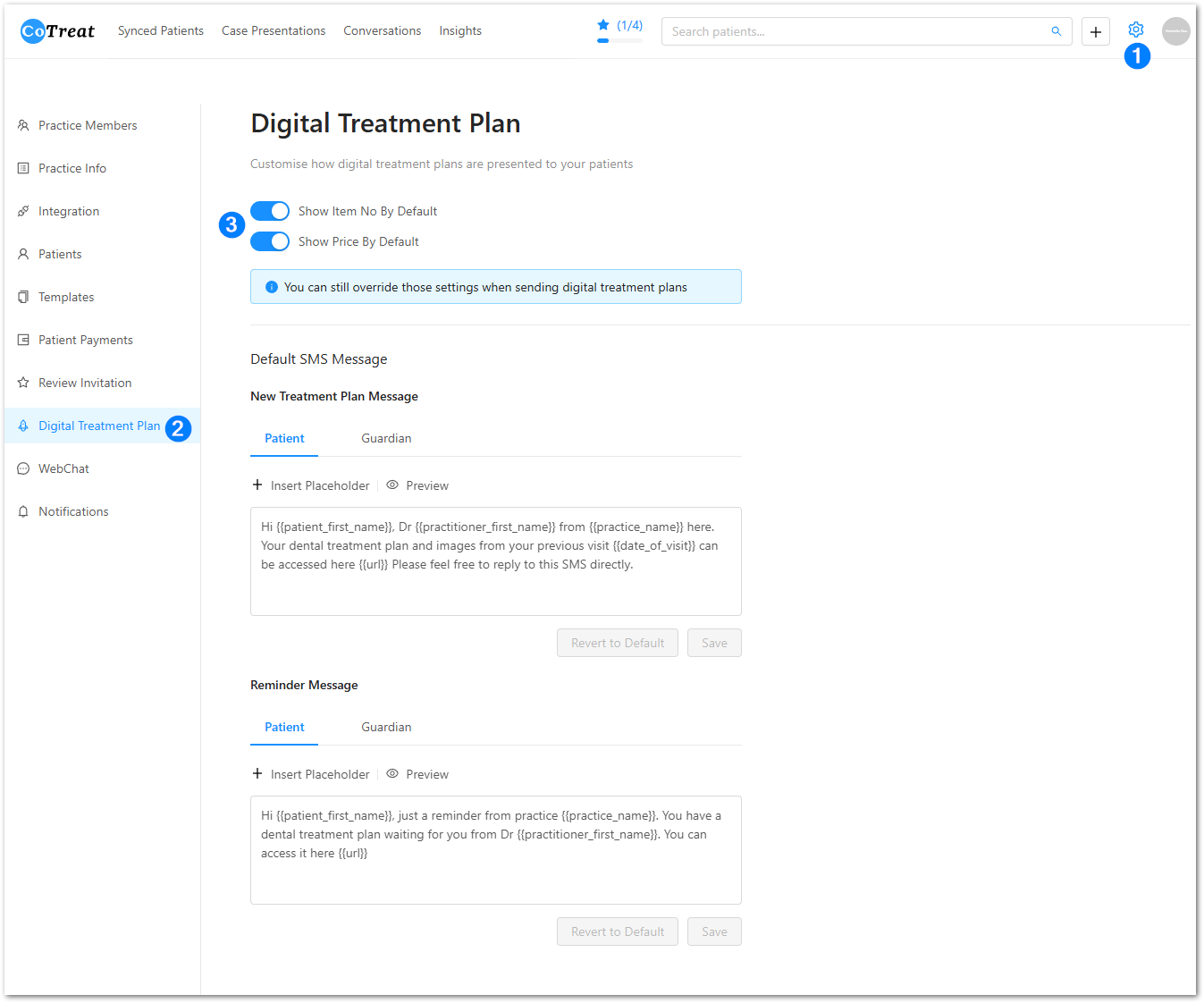 CoTreat gives you control over whether item numbers and prices are shown on Digital Treatment Plans sent to patients.